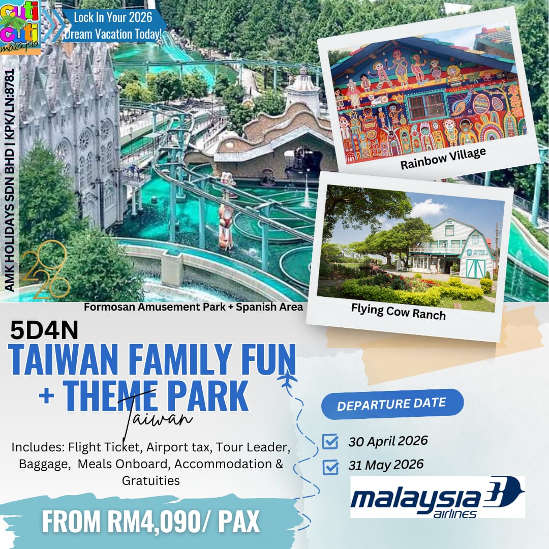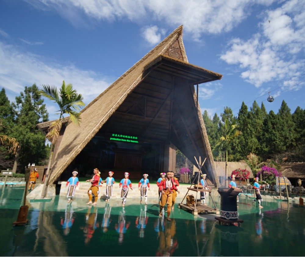 Taman teman yang menggabungkan taman tema air, budaya asli Taiwan melalui rumah tradisional, gaya hidup dan tarian serta