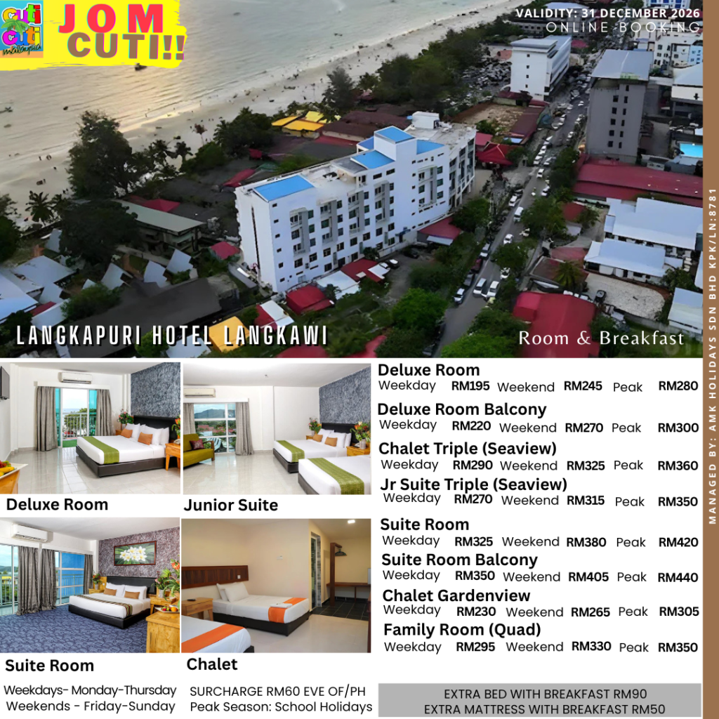 Elevate your dining experience with Langkapuri Resort’s exclusive offerings. Whether you prefer the ambiance of rooftop dining, a romantic dinner by the beach, or a casual BBQ by the seaside, we promise a memorable experience that delights the senses. Langkapuri beckons you to create lasting memories against the backdrop of Langkawi’s natural wonders. Let the soothing sounds of the waves and the gentle rustle of palm trees be the soundtrack to your escape, as you bask in the harmonious blend of luxury, affordability, and unparalleled hospitality that defines Langkapuri Resort