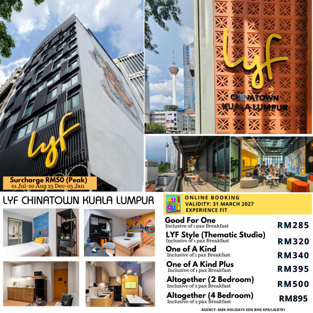 lyf Chinatown, a lifestyle hotel in Kuala Lumpur ideal for experience-led social living offers a range of fun, spacious, and functional rooms ideal for independent creatives and next-generation travelers. Guests can choose from the ‘Good for One’ studio, ‘One of a Kind’ or larger units “All Together (2-Bedroom) or “All Together (4 Bedroom Duplex).