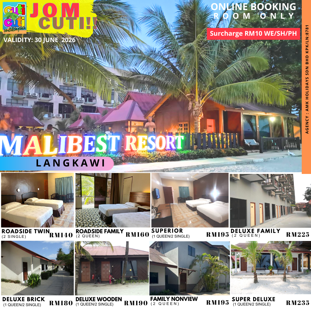 Malibest Resort, a family-owned getaway on Cenang Beach, Langkawi, offers seafront views, comfortable rooms, and warm hospitality. Perfect for families and travelers alike, with spacious rooms and private beach homes.