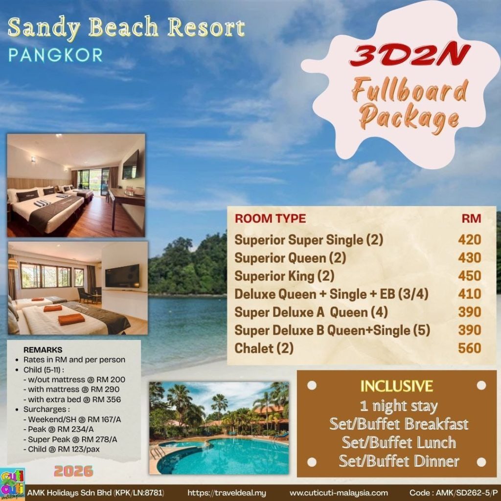 3D2N Pangkor Sandy Beach Resort (Fullboard)