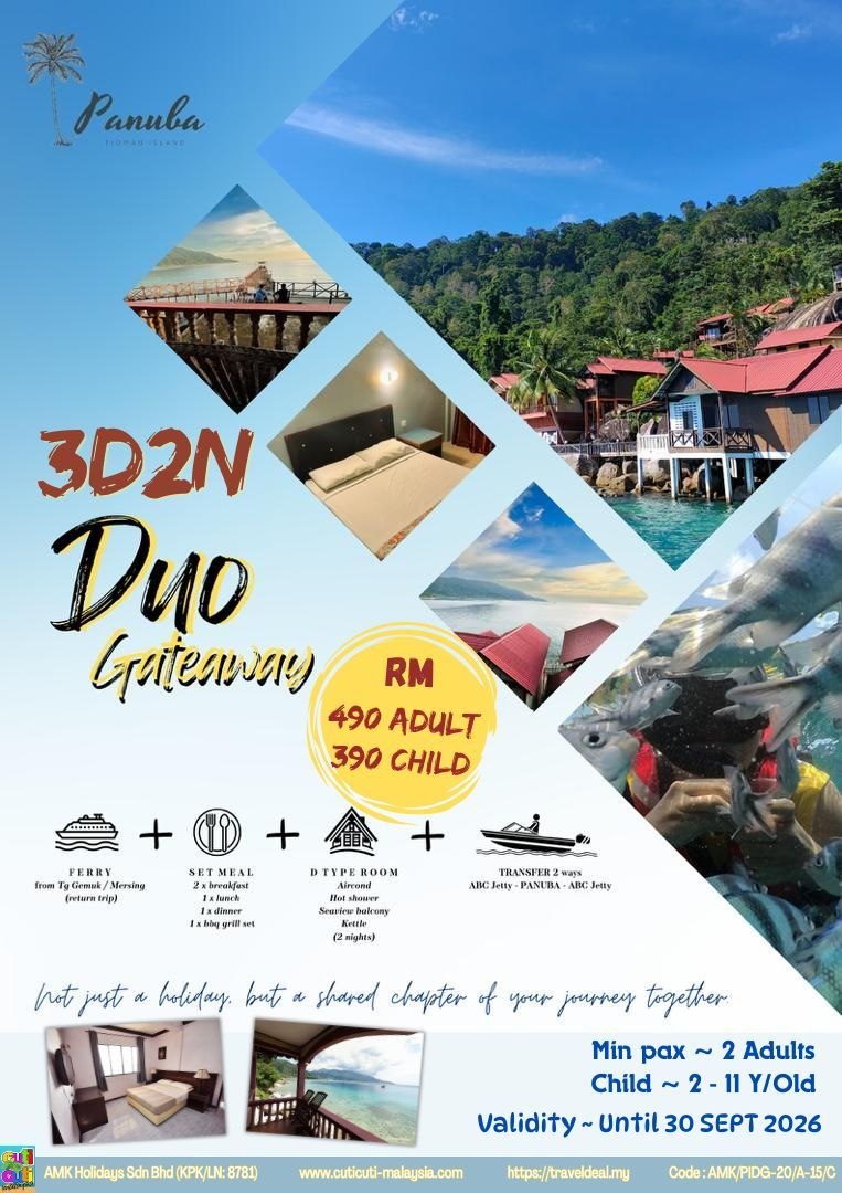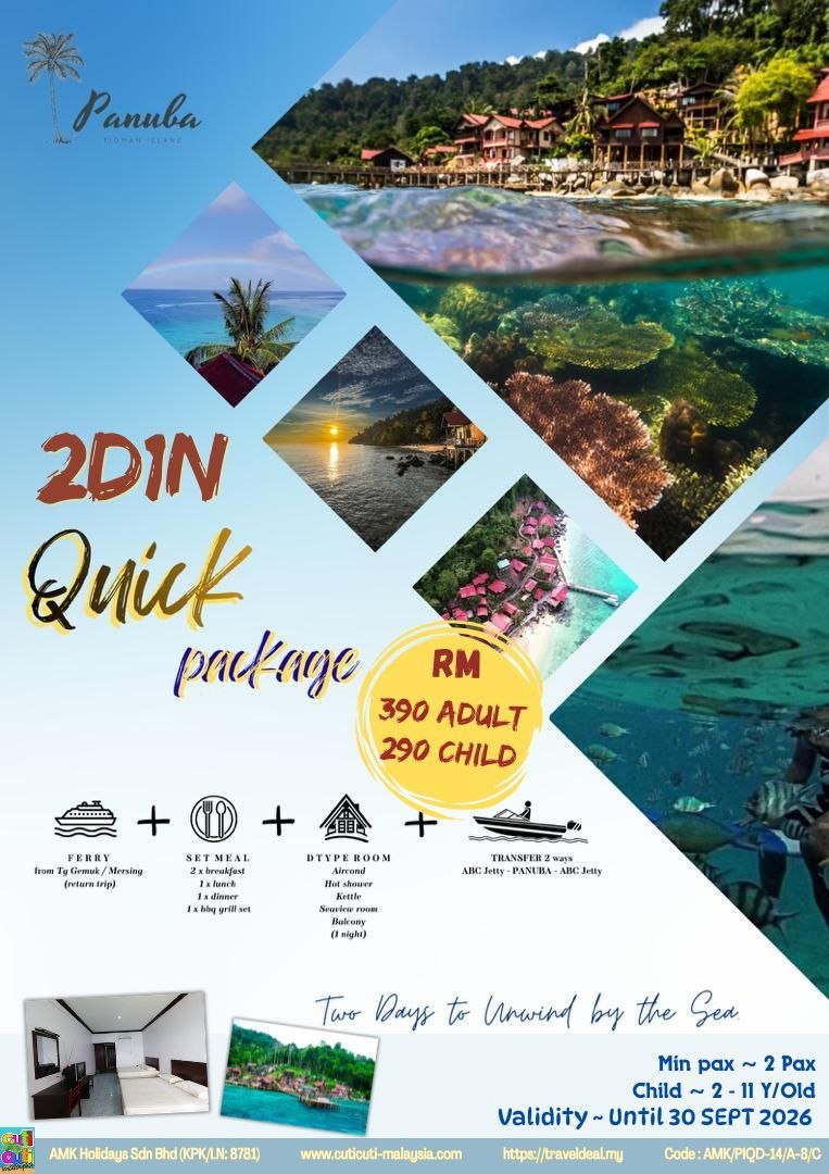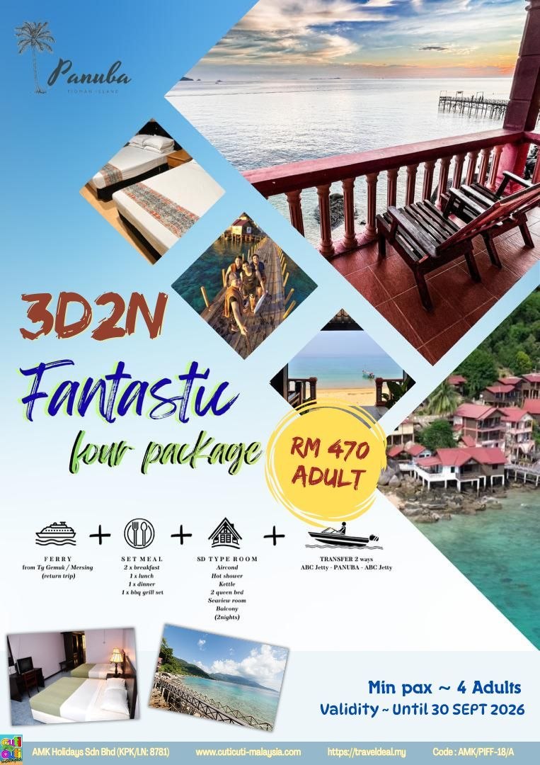 Panuba Inn Resort is a budget-friendly, tranquil beach resort on Tioman Island, Malaysia, located in a secluded bay north of Air Batang (ABC). Known for its private beach, snorkeling spots, and basic, rustic fan-cooled rooms with stunning sea views, it is accessible by ferry from Mersing or Tanjung Gemok.