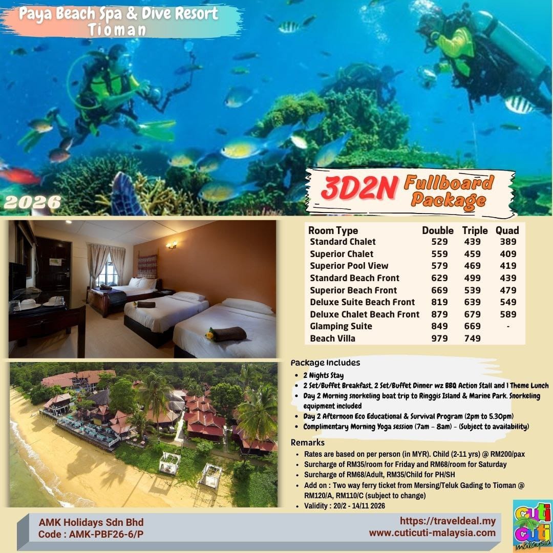 Paya Beach Spa & Dive Resort, Tioman (3D2N Fullboard Package)
