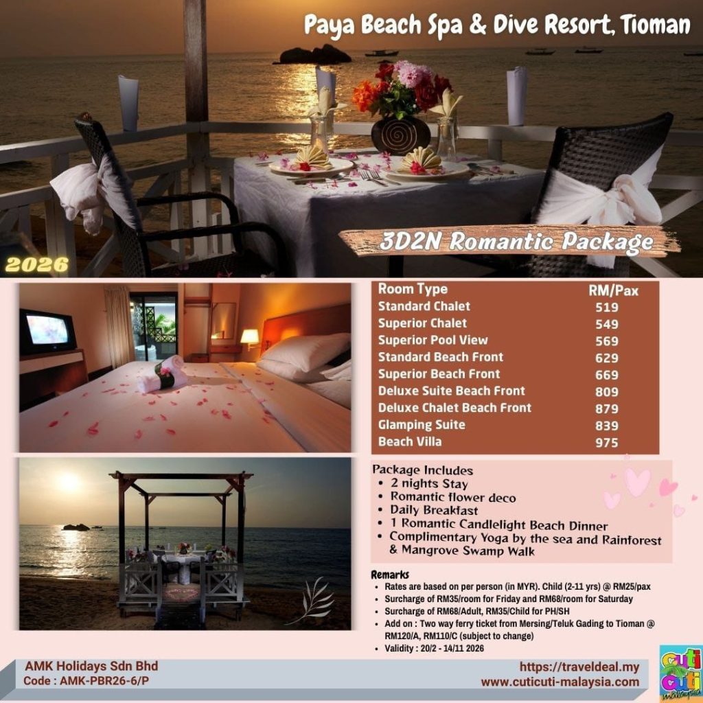 Paya Beach Spa & Dive Resort, Tioman (3D2N Romantic Package)