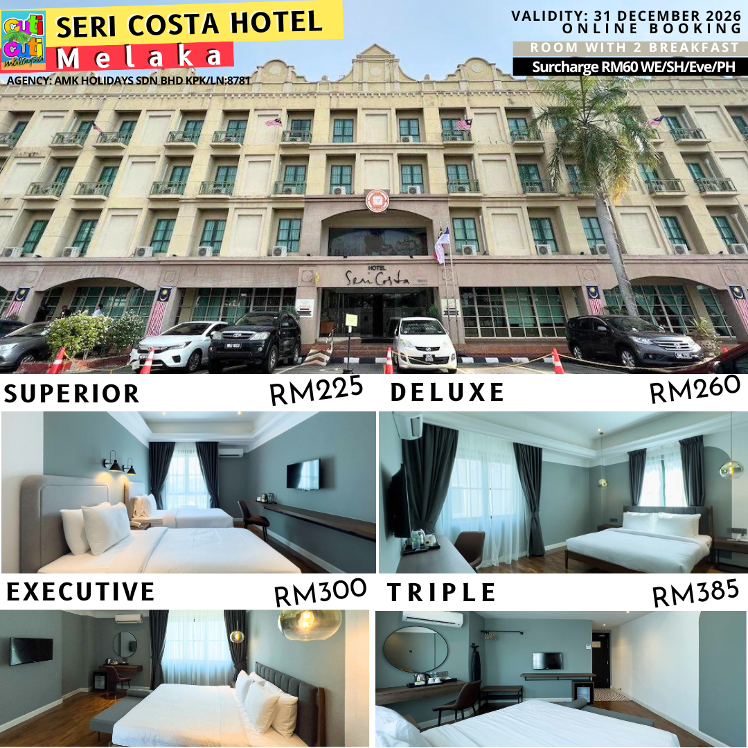 Stay at Hotel Seri Costa Malacca; Your Gateway to Tourists Attractions, Ideal for Business and Holiday Retreats. Discover our exceptional individual packages with all-inclusive meals & facilities