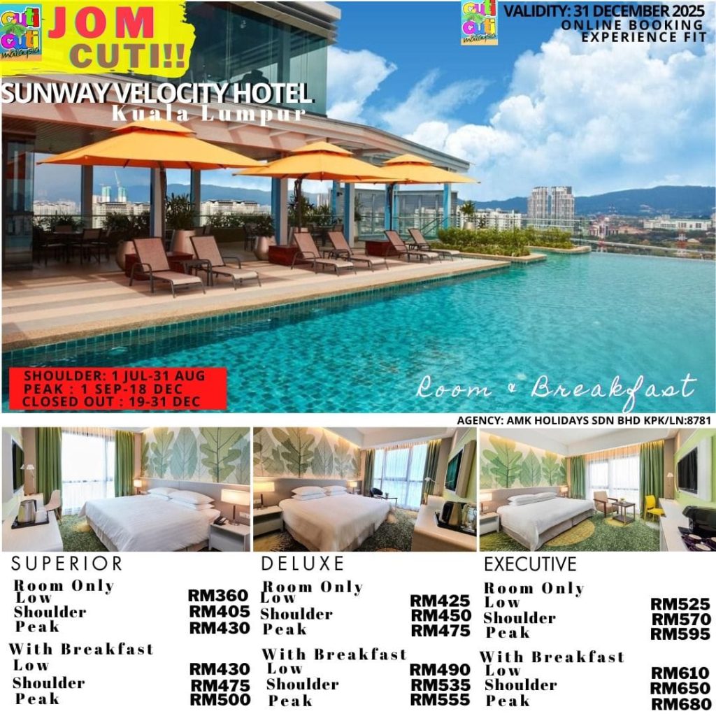 Located just 10 minutes from Kuala Lumpur city centre, Sunway Velocity Hotel is a 4-star, 351-room property offering exceptional comfort, convenience, and style. Set within the vibrant, self-contained Sunway Velocity development, the 16-storey hotel features a striking façade and is directly connected to Sunway Velocity Mall, Sunway College, and Sunway Office Towers. Guests can also enjoy the proximity to Sunway Medical Centre Velocity, and benefit from easy access to transportation, with two major LRT/MRT stations at Maluri and Cochrane just a short walk away.