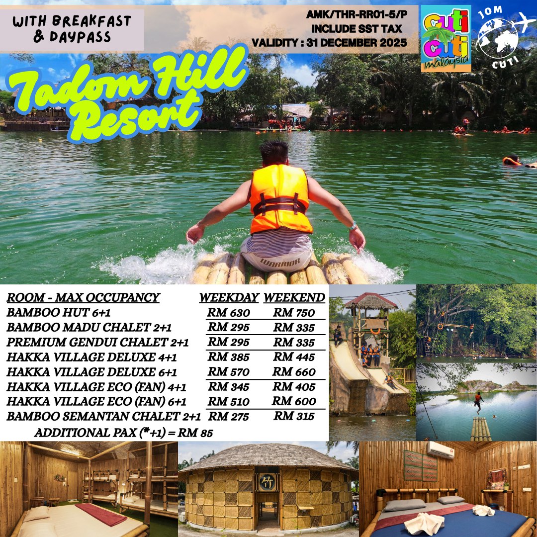 Set amidst 45 acres of breathtaking tropical beauty in the southern part of Klang Valley, Tadom Hill Resorts offers a unique blend of splendid experience and serenity. Located within 45-minutes’ drive from the heart of Kuala Lumpur and close proximity to the Kuala Lumpur International Airport, Tadom Hill Resorts has all the elements for a magnificent getaway. Our intimate and boutique setting offers a truly unparalled and authentically Tadom experience where you will be welcomed by the uniquely Tadom’s bamboo-inspired architectures and warm hospitality by our dedicated team of staff here at the resort, majority of whom are the aborigines of the Temuan origin or better known as Orang Asli.